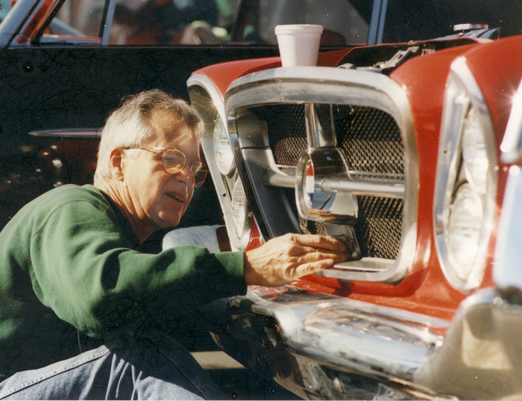 Well, three days before the Indy Meet I drove the ‘C’ to George & Eleanor Riehl‘s house in Ann Arbor, MI. George and Eleanor were very close and dear friends as well. If I wasn’t at Gil’s house I was at George’s house. I think they felt sorry for me because I was still single in the early years. George & I caravanned to Indy. The only thing I was missing on the car was the grille medallion. When I got to Indy, Gil pulled me over to the side and told he was surprised and pleased that I made it. He handed me a NOS Grille Medallion with chrome bezel in the original box and said that my car deserved to have it installed before the judging began. He would not take a nickel for it, even though I insisted. That shows you the type of person Gil was. He was extremely passionate about the Chrysler 300 Club and members. He was always giving of his time and help.