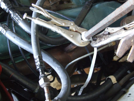 Step four: Remove the cut zip-tie. I used a crow-bar and zip-ties located with vice-grips to catch the top of the compressing zip-tie and lever it out through the top.