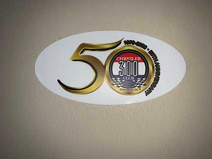 Joe Gross has had a limited number of “Peel & Stick" 50th Anniversary Weatherproof Decals for your 300 window.