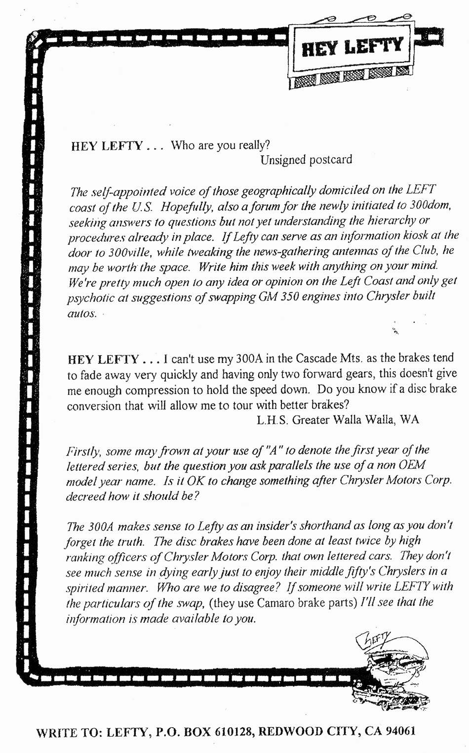 This Newsletter is published for the members of the Chrysler 300 Club International.
