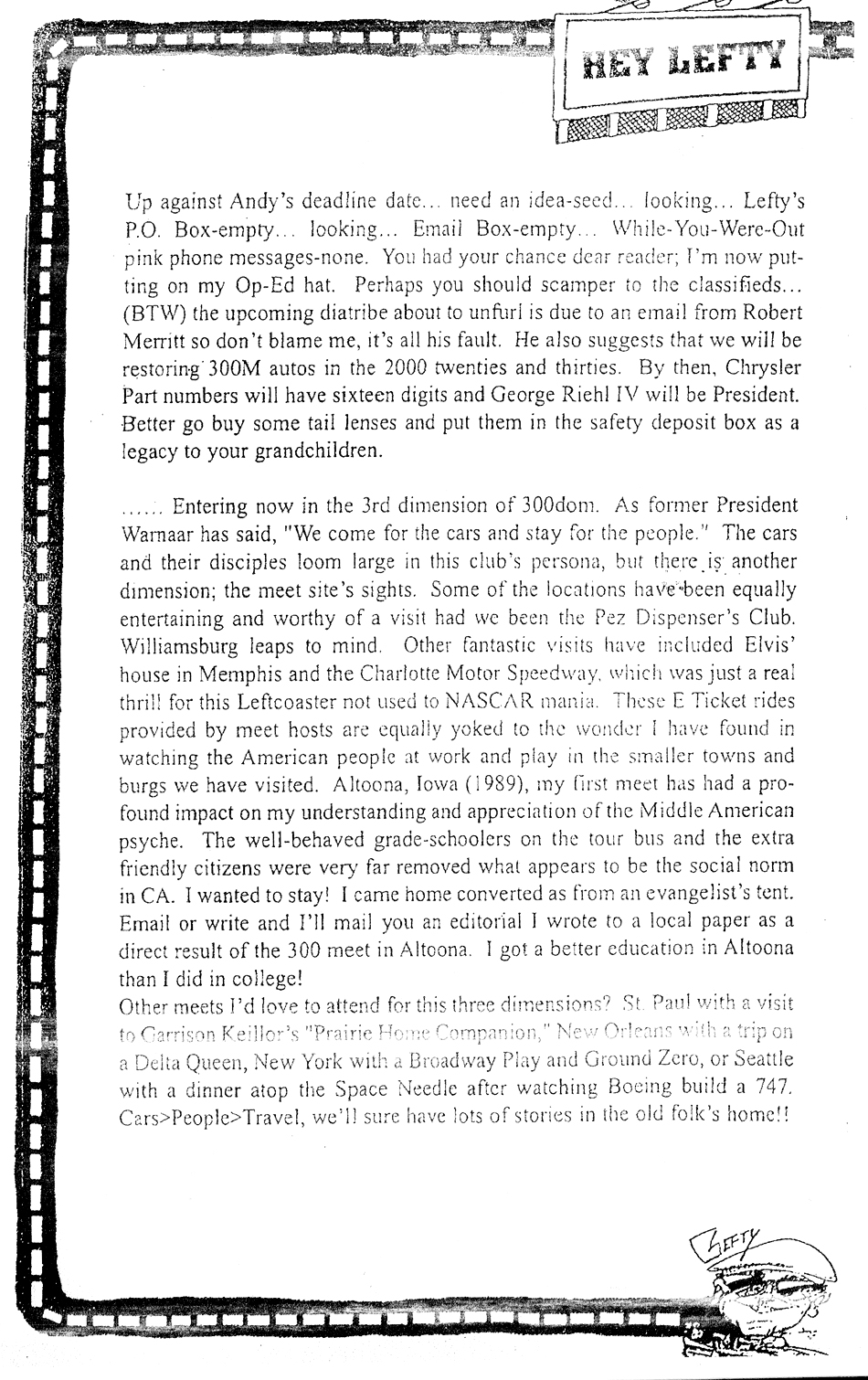 This Newsletter is published for the members of the Chrysler 300 Club International.