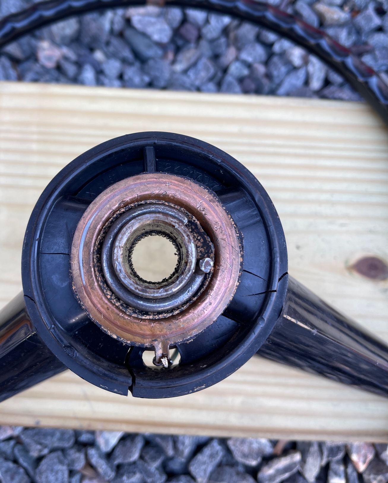 After putting a different wheel on, I got to looking at this one. An ohm meter showed continuity between the copper ring and the steering wheel center. There was no insulating material between the copper ring and the metal clip like I’ve seen on other wheels, and also the copper ring just sits on top of the Wednesday, June 05, 2024steering wheel center anyway.