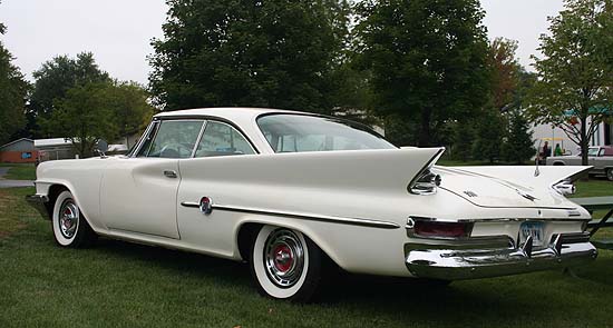 The 1961 300G saw another restyle. The grille, formerly wider at the bottom than the top, was inverted; the quad headlights, formerly side-by-side, were arranged in angled fashion, inward at the bottom, in a manner reminiscent of 1958-1960 Lincolns.