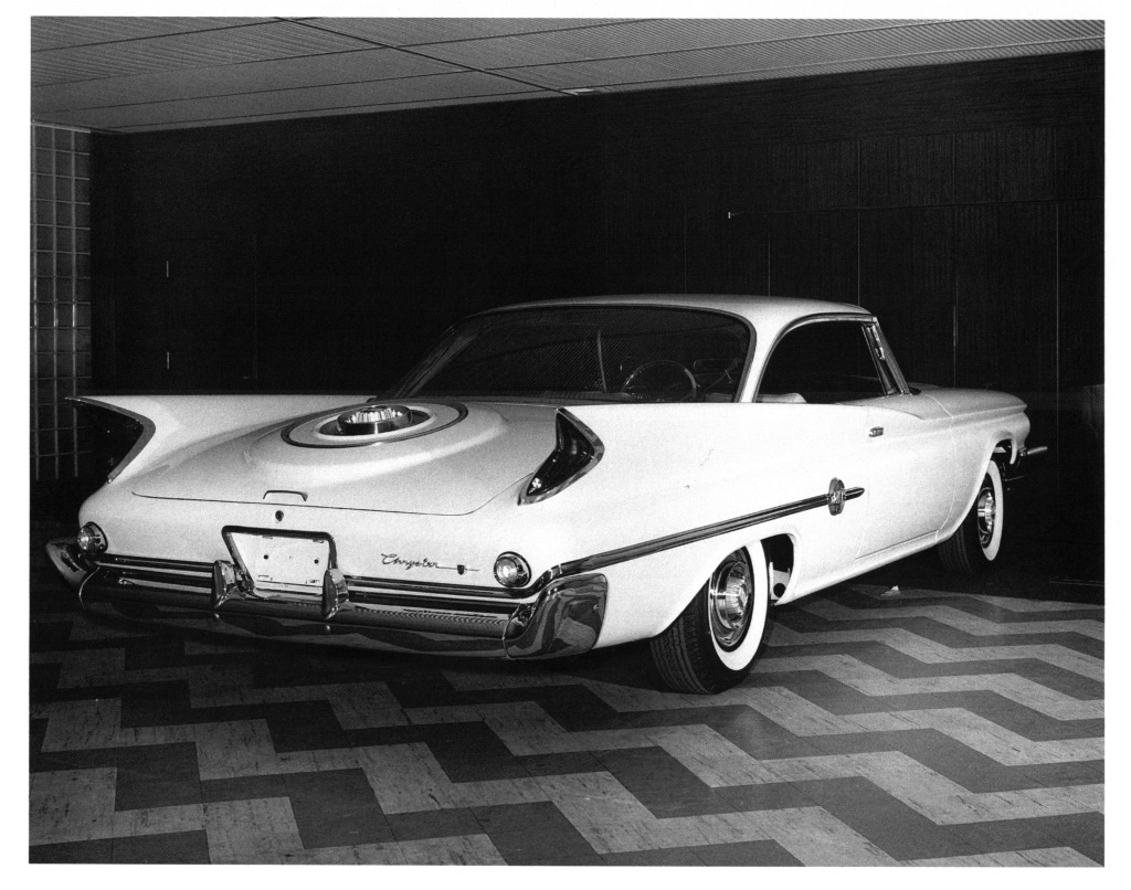 I was always curious about this photo but assumed it was an early press car that they had fitted Captive-Air tires to instead of the standard Blue Streak tires. The fact that the tire looked like it was a little low on pressure reinforced this idea. While looking at some other Captive-Air tire information related to my 1960 Chrysler New Yorker Town & Country wagon, I came across some documentation that showed that Goodyear did actually make Blue Streak Captive-Air tires in 1959 and 1960. I went back to these photos and under further examination, it does indeed say Blue Streak on the sidewall. It doesn't say Captive-Air on the front of the tire though.
