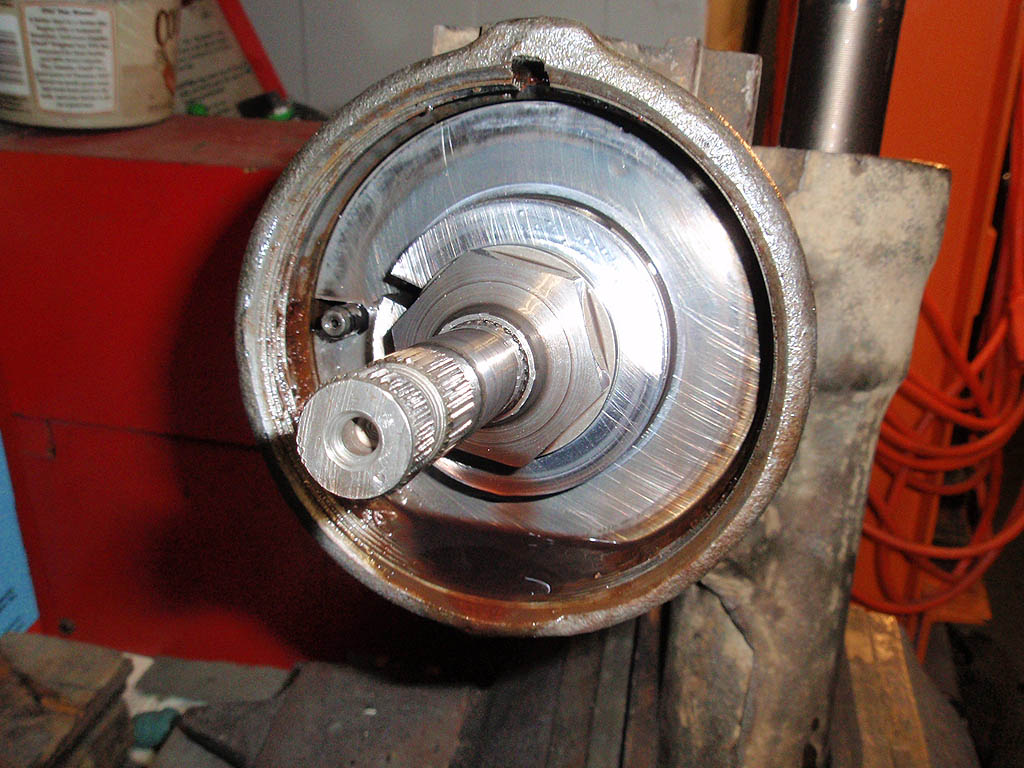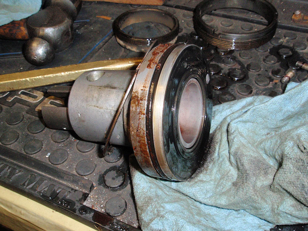Collar removed showing lock nut for thrust bearing. If I was just re-sealing this box, everything would come out together to keep all the parts in line.