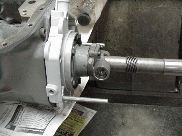 - Pic 8b Output shaft support installed with guide studs visible.