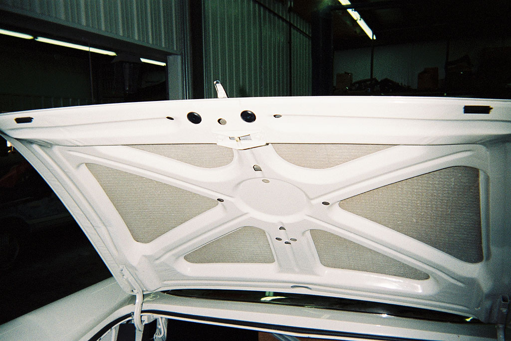 Under the lid of the 300G with 71 miles. The strike is painted over, as is the asphalt-type sound deadener, which generally appears to have absorbed the paint.
