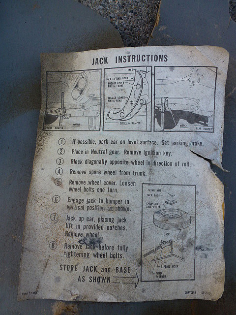 Jack instructions for all 1961 Chryslers.